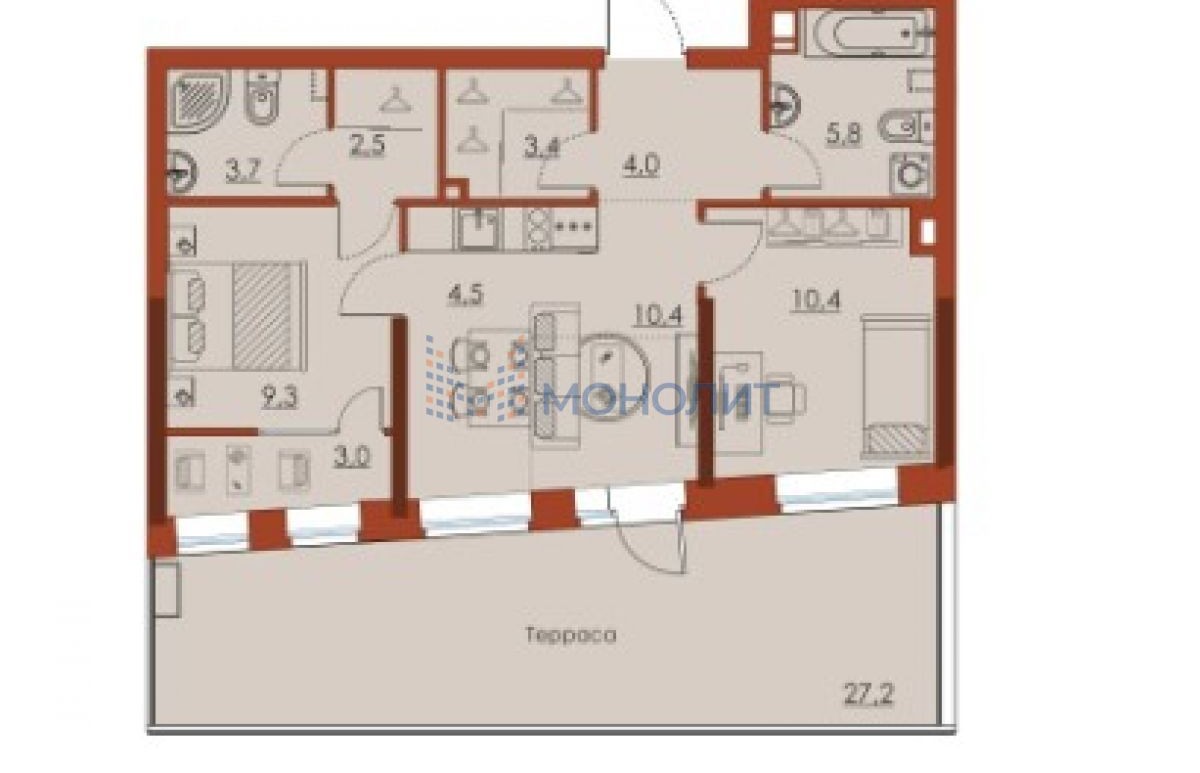 2-комнатная квартира, 84.2 м² - Объект 1868443