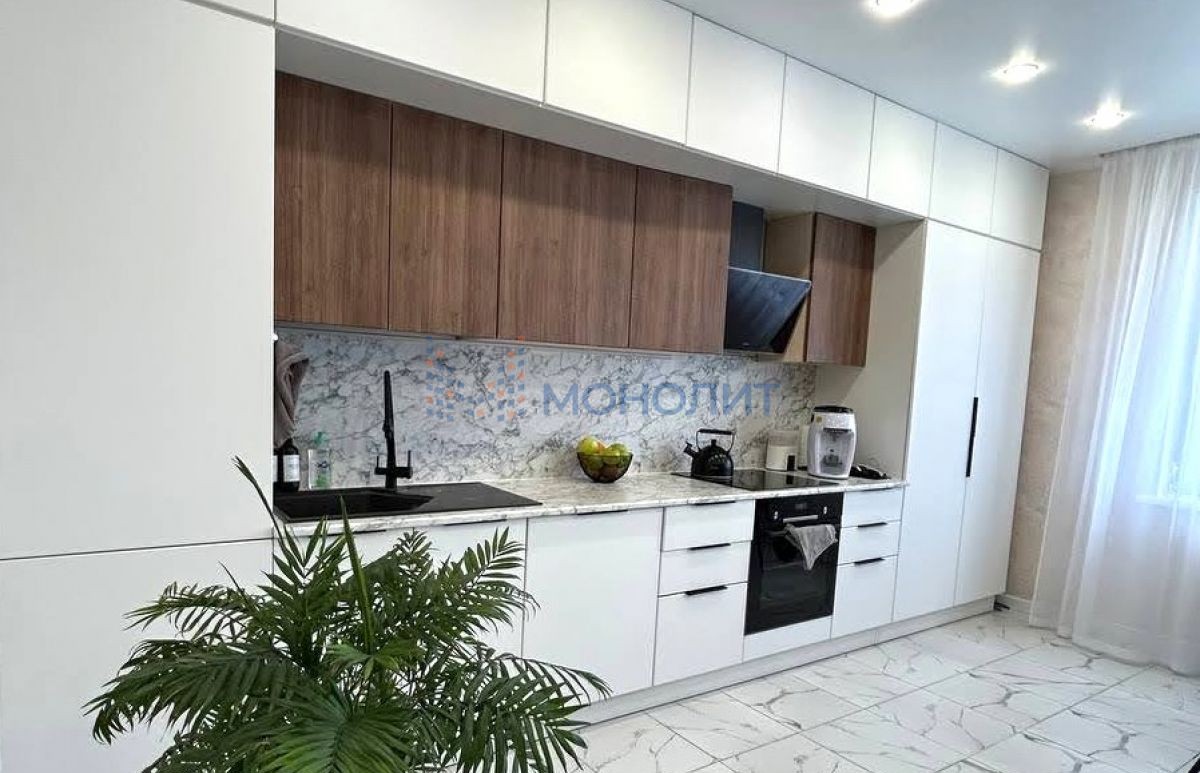 Кухня совмещена с гостиной, что делает пространство более функциональным и просторным, перепланировка узаконена.
