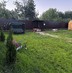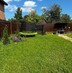 На участке газон, плодовые деревья, туи, мангал, летний душ и туалет.