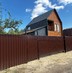 Периметр ограждён забором с откатными воротами, парковка внутри на 5 автомобилей из брусчатки, выкладываются дорожки.