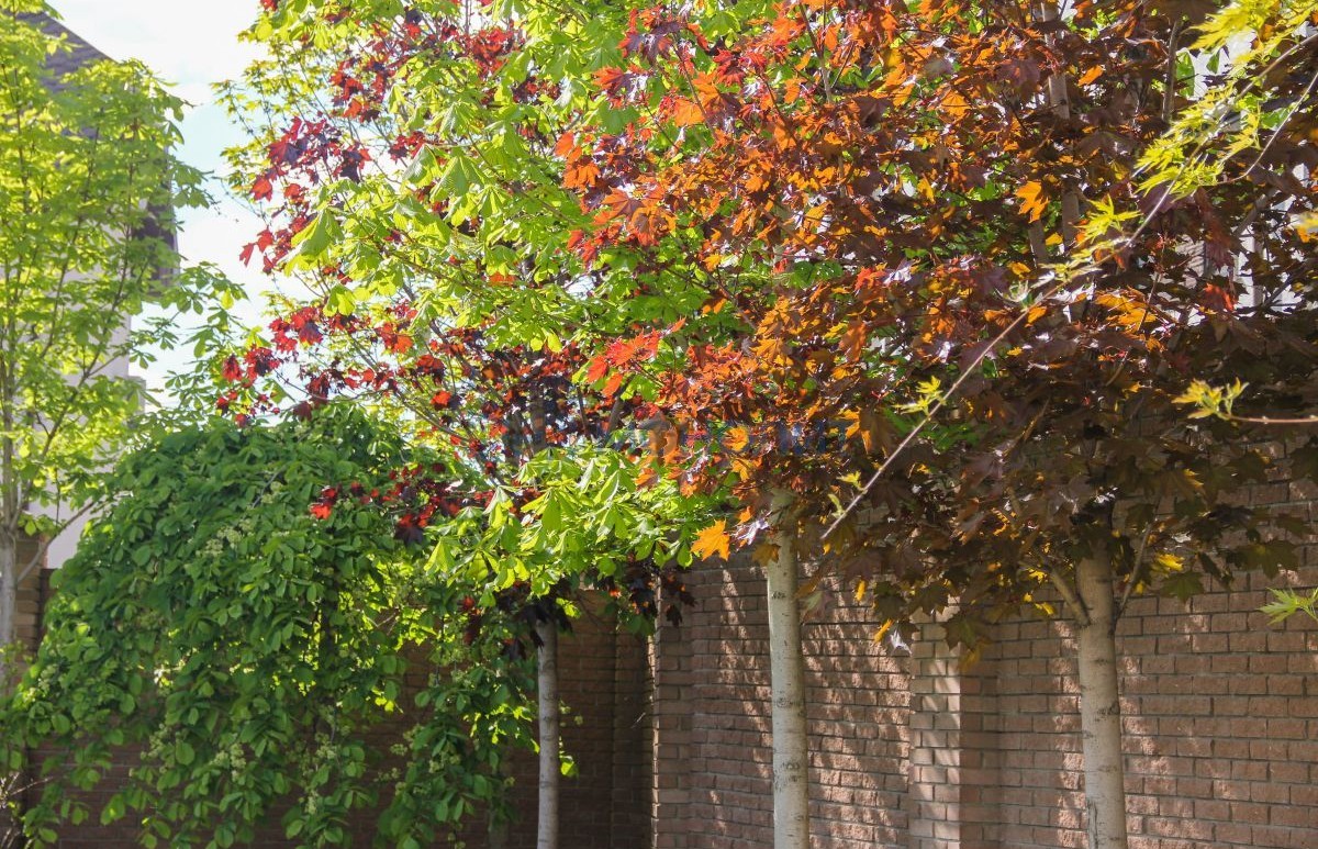 Участок ровный с дренажной системой. Продуманный ландшафтный дизайн с обилием декоративных растений и взрослых деревьев, на остальных участках лежит голландский газон.