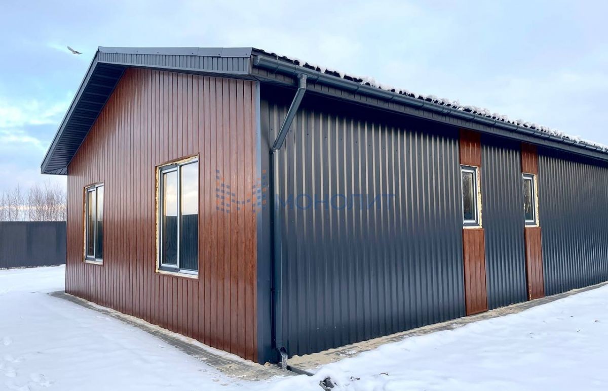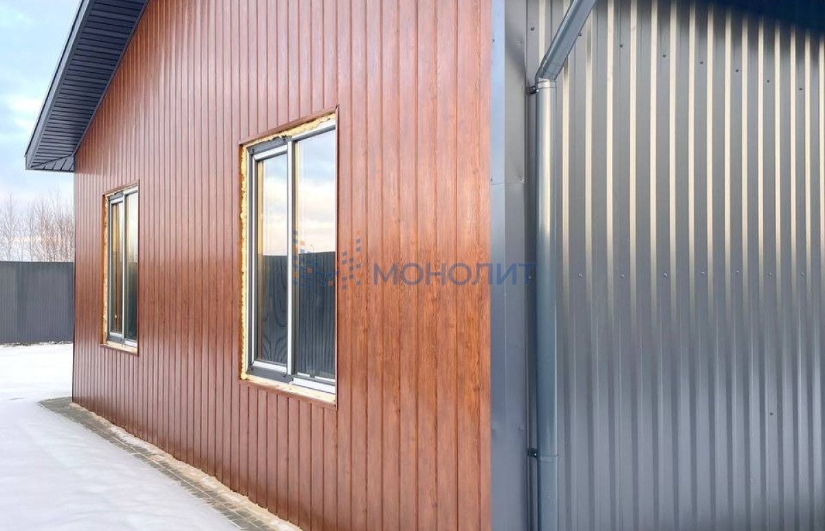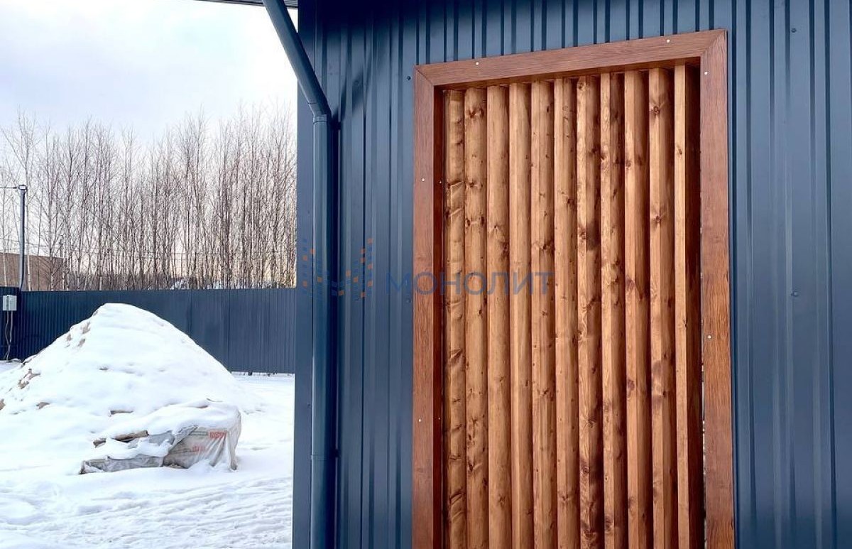 Снаружи дом полностью готов. На крыше установлены снегодержатели, по периметру сделана водосточная система.