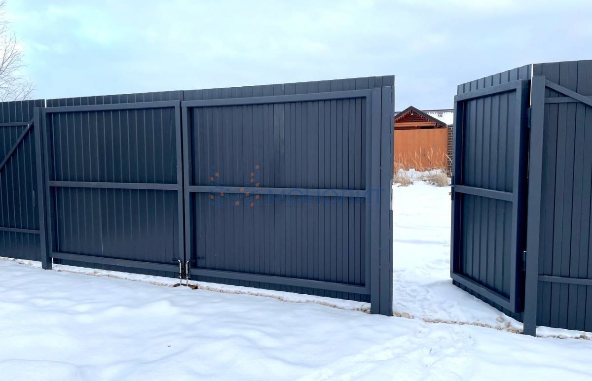 По периметру поставлен забор с калиткой и воротами, сделана зона для парковки внутри (на 2 машины) и очень много места снаружи забора.