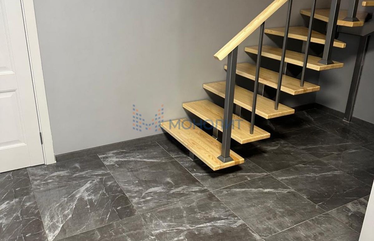 На 1 этаже расположена кухня-гостиная с выходом на веранду, спальня и большой санузел. Теплый пол на всём этаже, на полу хороший керамогранит. Сделан хороший ремонт. Большая крытая веранда.