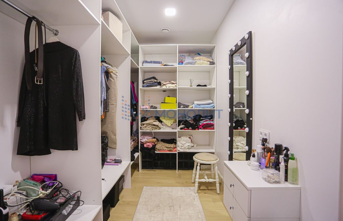 - 2 этаж: 3 комнаты (2 спальни и 1 детская), гардеробная, ванная с постирочной.