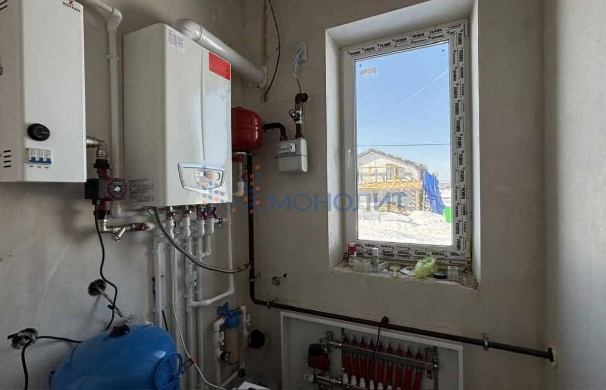 -отопление - газовый котёл, двухконтурный с закрытой камерой, а так же установлен электрокотёл; водяные тёплые полы по периметру всего этажа выполнены из сшитого полиэтилена марки (Веrrgеr), установлены стальные панельные радиаторы (Веrrgеr);