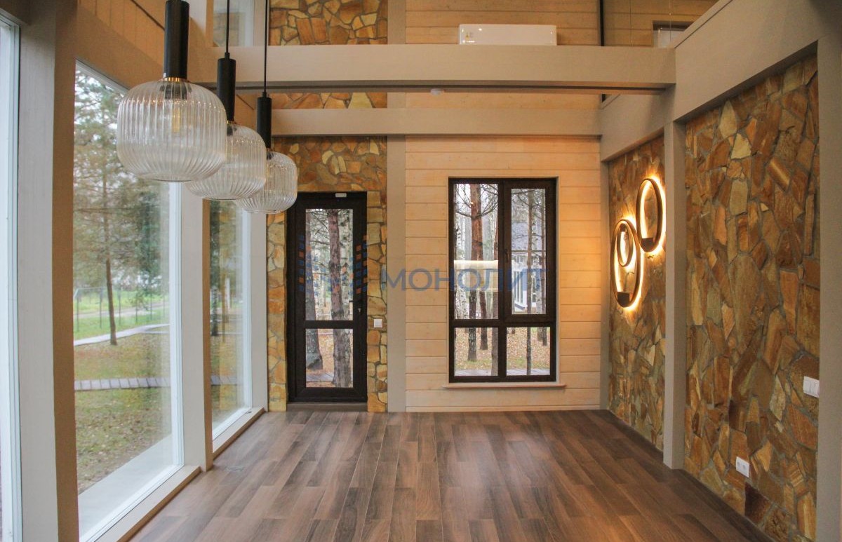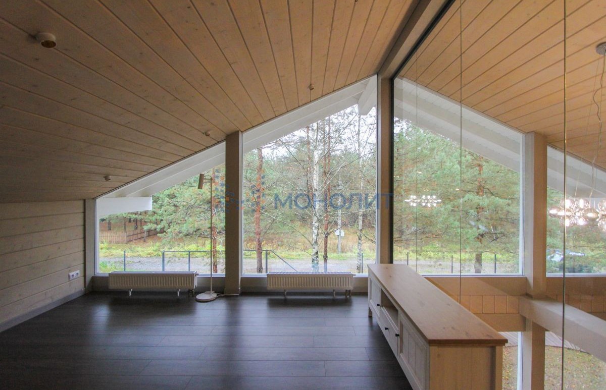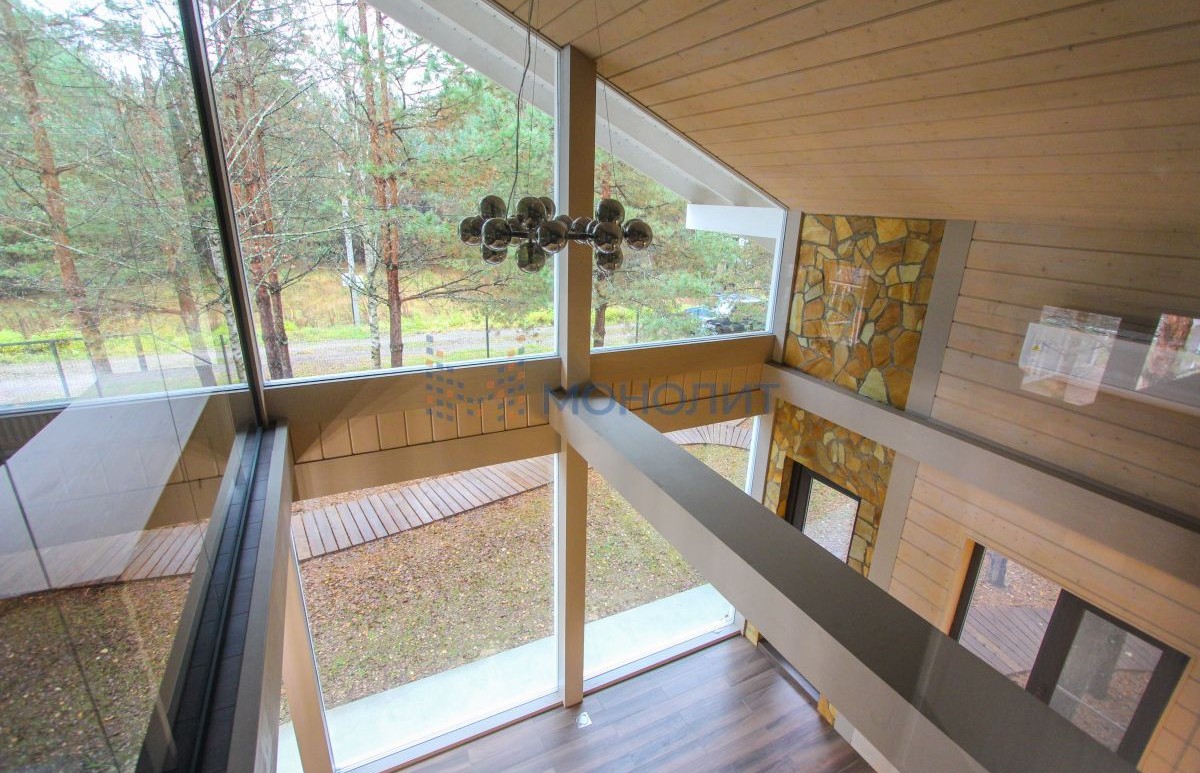 - Панорамные окна с видом на лес.