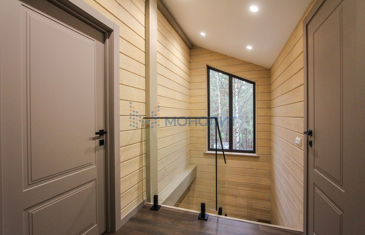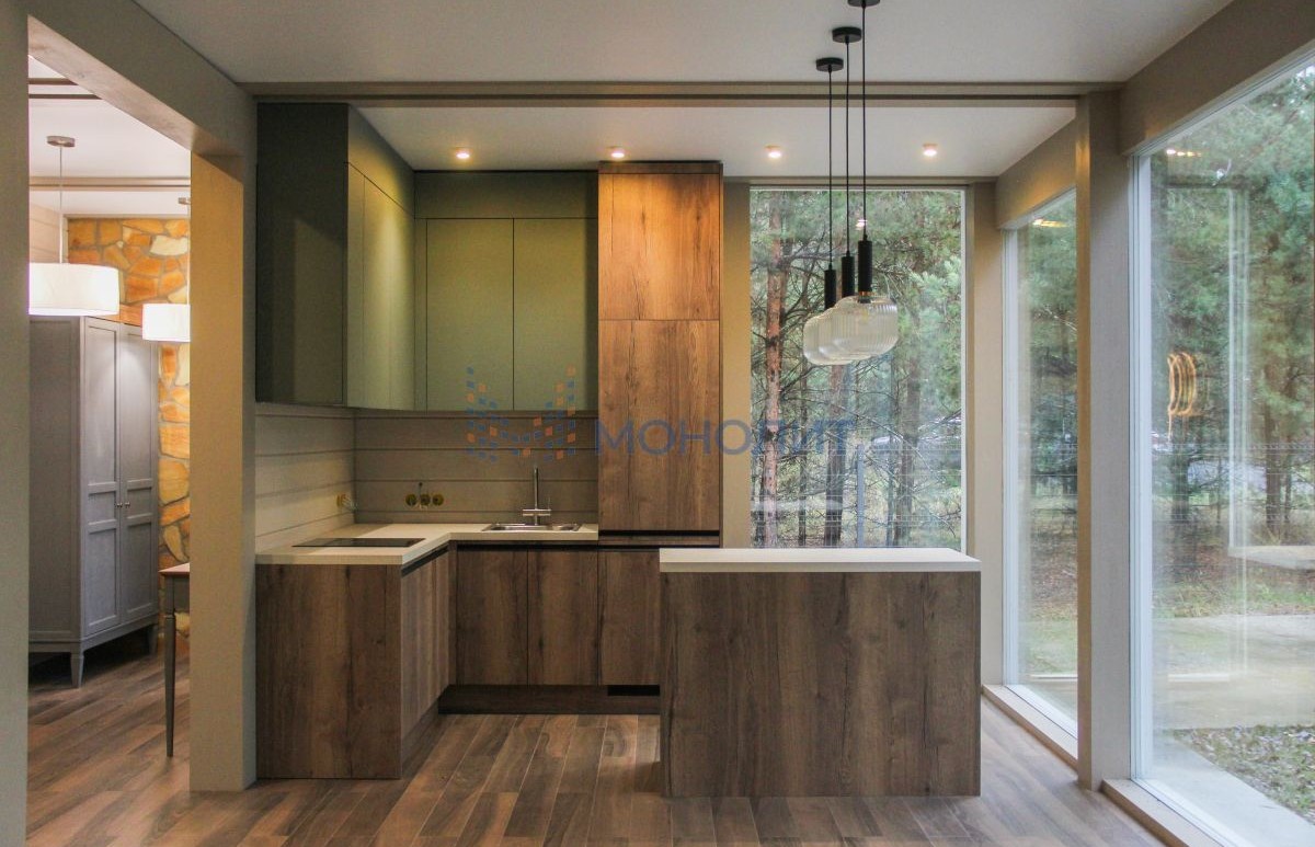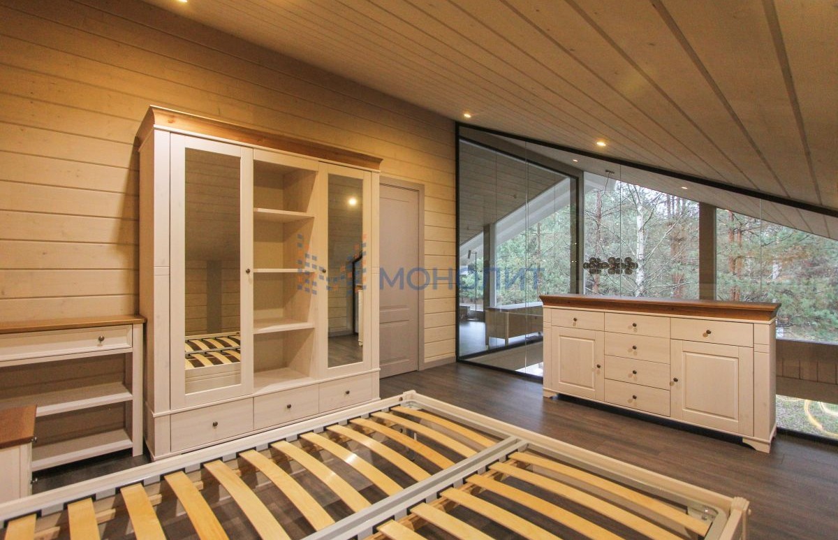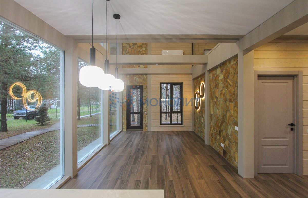 - Панорамные окна с видом на лес.