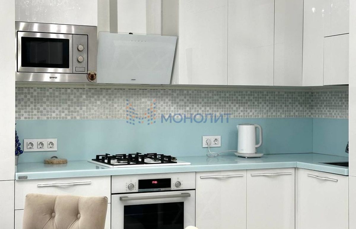 Установлен качественный кухонный гарнитур Мария со встроенной техникой (стиральная машина LG, холодильник, газовая плита Bosch, микроволновая печь Gorenje, духовой шкаф Bosch, вытяжка).
