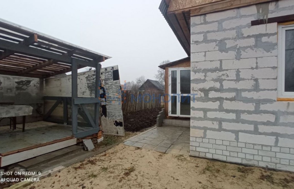 Пристрой из газосиликатного кирпича, планировалась кухня, построена котельная. Есть беседка.