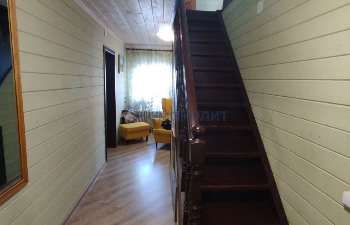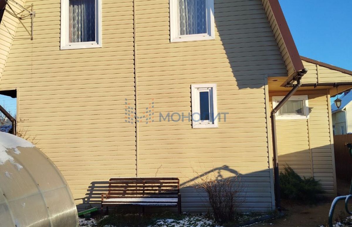 Двухэтажный жилой дом общей площадью 110 м2. Стены бревно, пристрой каркасный, обшит сайдингом , крыша из металлочерепицы, окна пластиковые, новая электрика.
