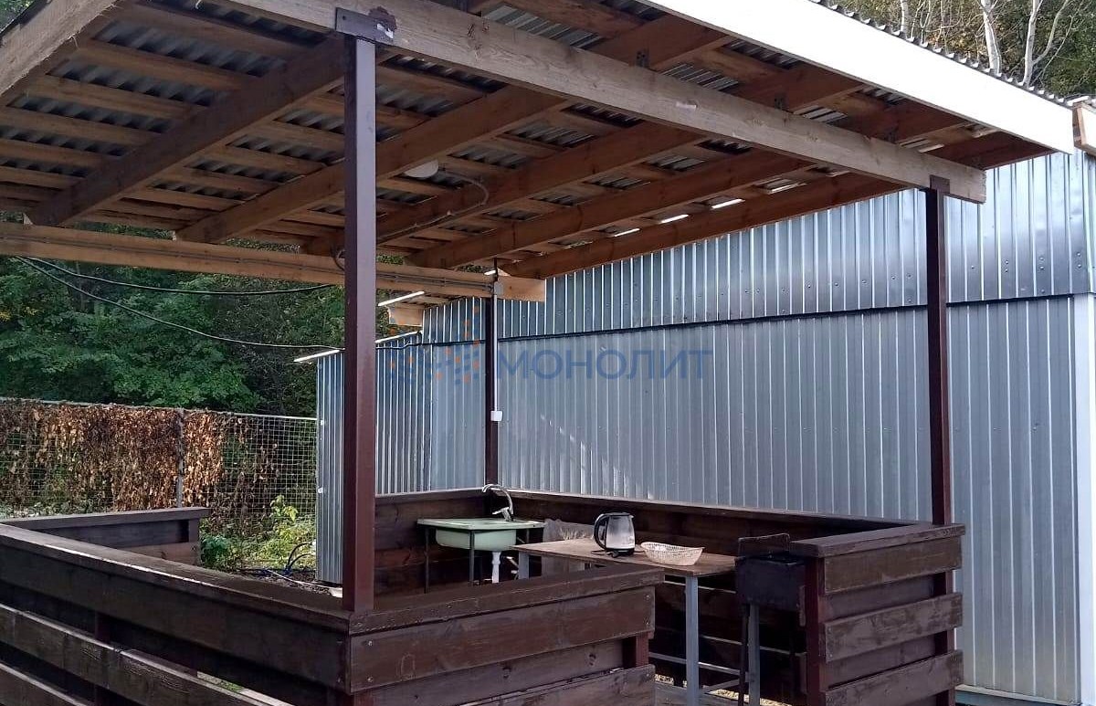 Вместе с домом продается прилегающая территория, площадью- 3 сотки (в собственности) . На ней расположены беседка и 3 утепленные вагончика. В них проведено электричество, есть санузлы, горячая и холодная вода. Вагончики пользуются спросом у туристов, рыбаков.