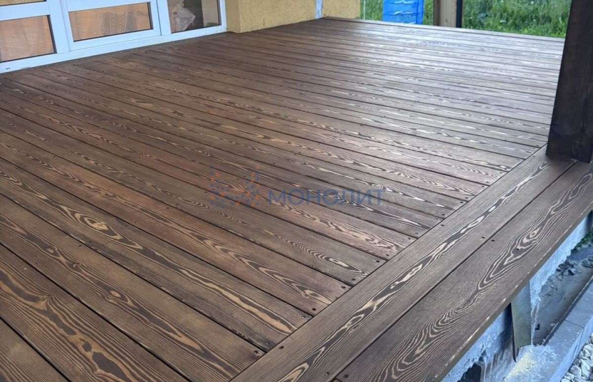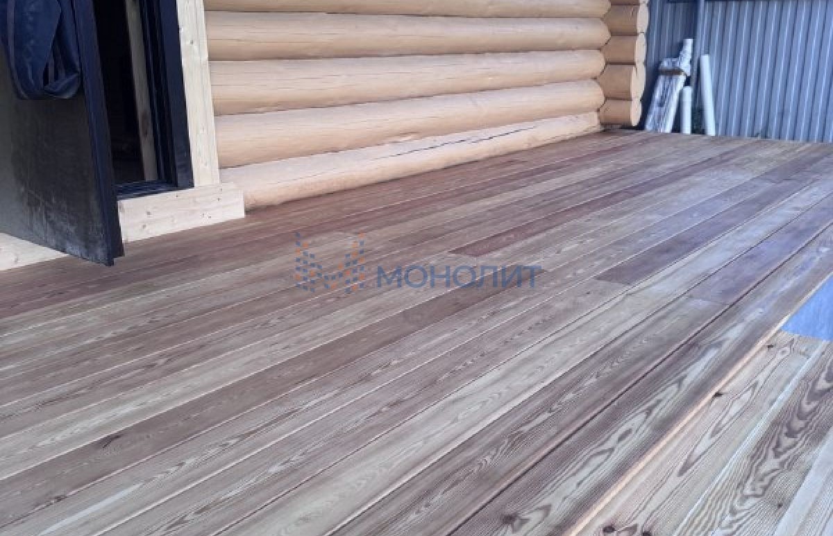 Полы террасы дома и бани сделаны из лиственницы- вечные (см. последние фото с летнего сезона)