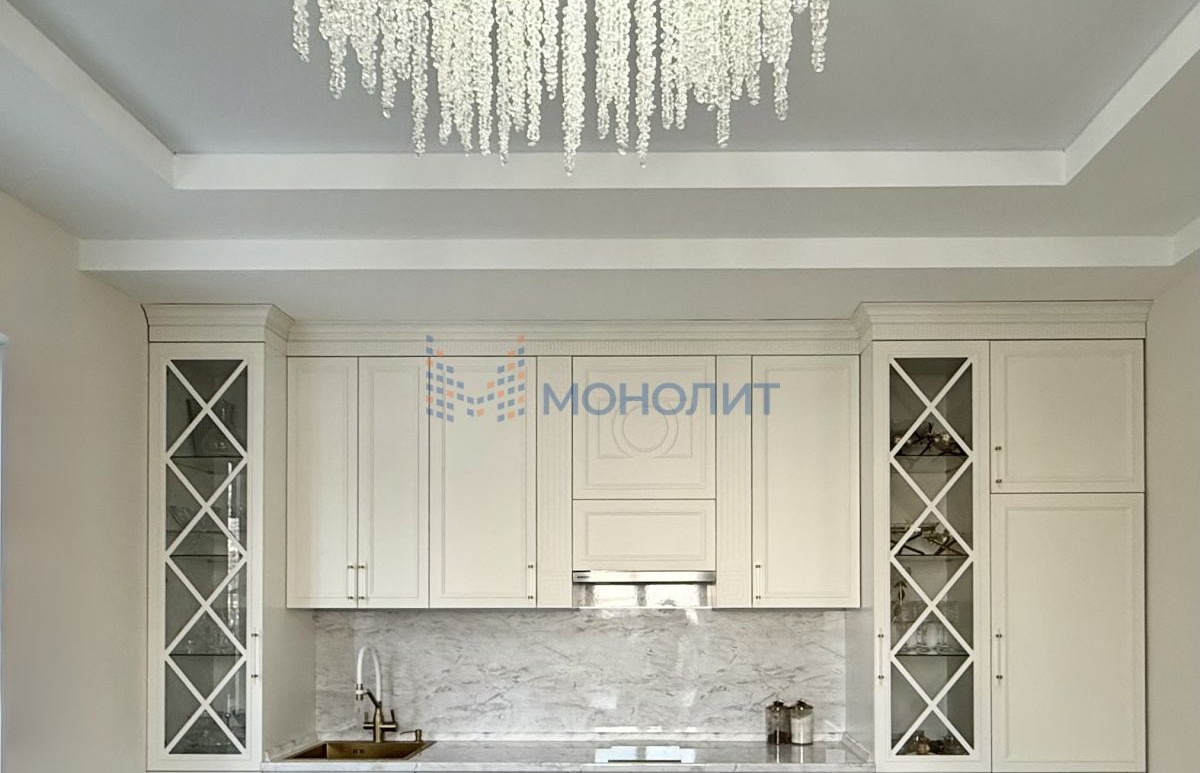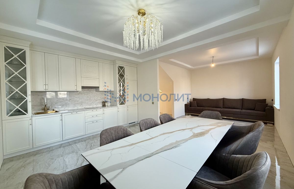 ✔ Сердце дома — светлая кухня-гостиная с элегантным белым гарнитуром. Здесь так приятно собираться за большим столом или отдыхать на удобном диване.