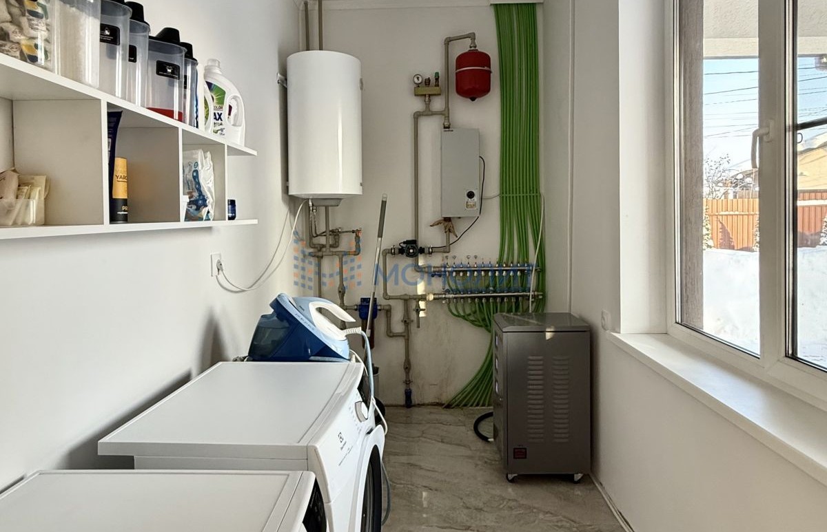 Бойлерная и постирочная в одном помещении. Это решение позволило сэкономить пространство и разместить оборудование для стирки, сушки и глажки белья в одном месте.