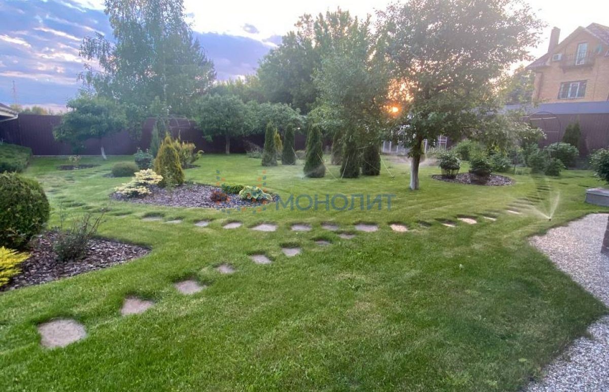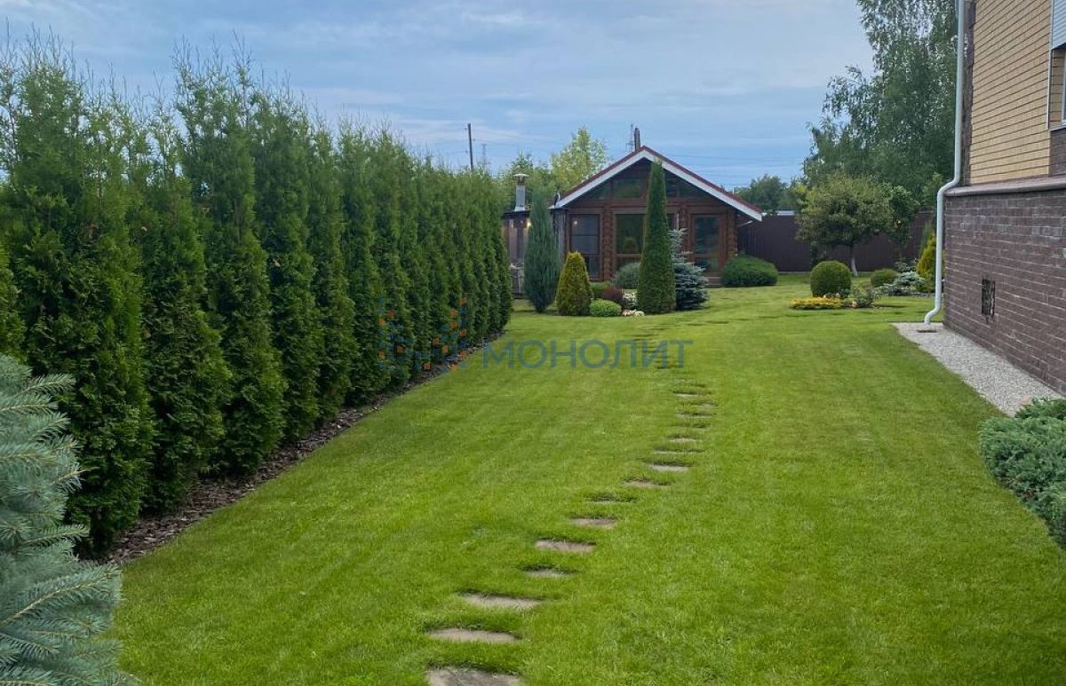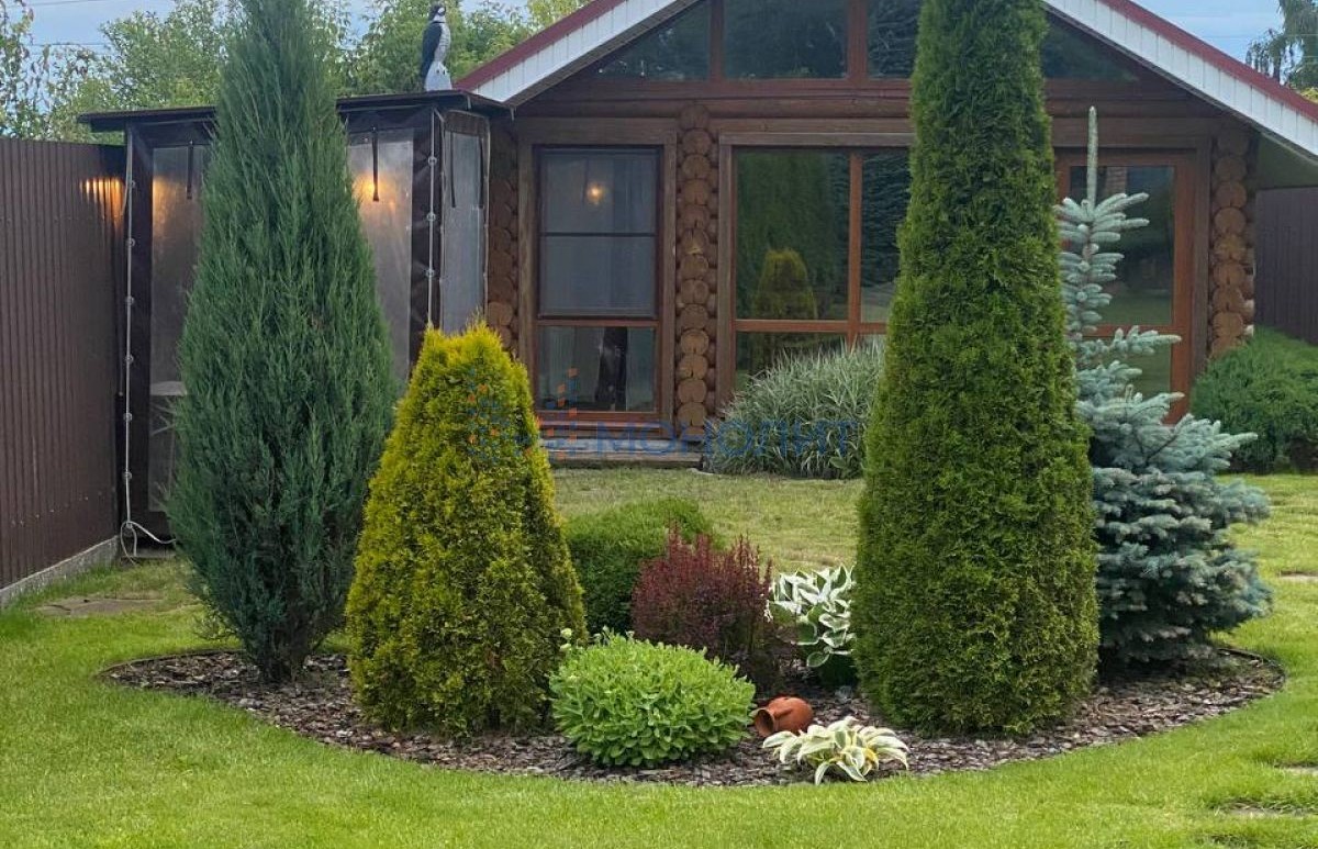 На участке создан красивый ландшафтный дизайн: туи, пихты, цветы, плодовые деревья и декоративные кустарники. Все это создает уютную атмосферу, способствующую восстановлению после активного рабочего дня.