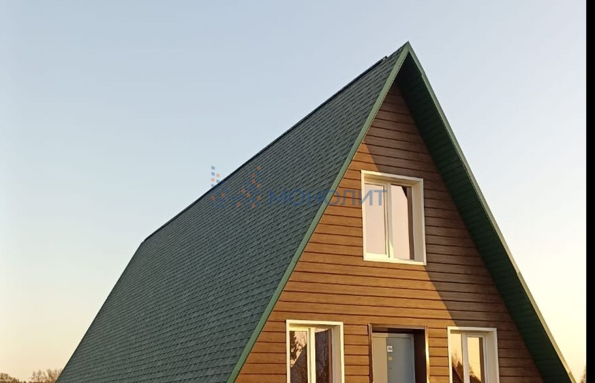 Шикарное предложение по цене и локации! Нижегородская область, Дальнеконстантиновский район, деревня Юловка, продается дом в стиле A-frame для круглогодичного проживания 135 кв.м. модной треугольной формы, со вторым светом площадью 70 кв. м. и вторым этажом. Участок 22 сотки. Документы на дом и участок готовы! Под финишную отделку! Дом по каркасной технологии, брус 200 мм на 55 мм, утепление 200 мм RockWool, дорогая пленка. За счёт треугольной формы очень равнопрочный и будет теплый, т.к объем дома меньше чем обычный. Кровля - мягкая черепица - Шингласс (не тонкая).Фундамент - бурнонабивные сваи, диаметр 300 мм, глубина 1500 мм, перевязаны между собой ленточным фундаментом 200 мм на 300 мм, бетон В30(везде!).Также залит фундамент под баню 6 м на 3 м - ленточно-свайный 400 мм на 700 мм и плита 3 м х 2м х 0,15 м, бетон все тот же - под мангал с душем.