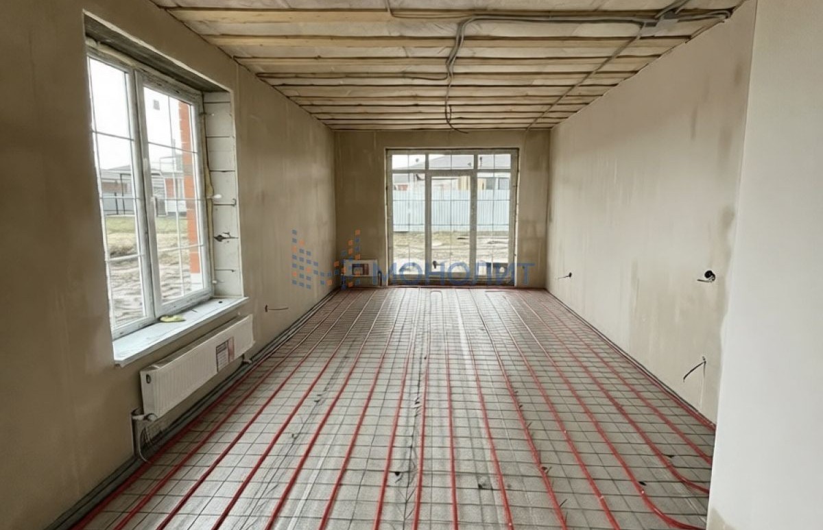 В доме сделана предчистовая отделка (штукатурка, разводка электрики, теплый пол по всему дому, двухконтурный газовый котел, гидроподготовка для скважины) дополнительно установлены радиаторы, останется только постелить напольные покрытия и поклеить обои.