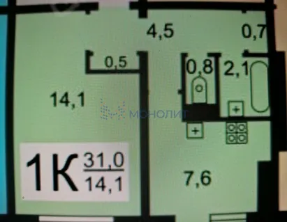 1-комнатная квартира 31 м² 1/5 эт.