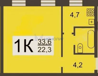 1-комнатная квартира 33 м² 4/25 эт.