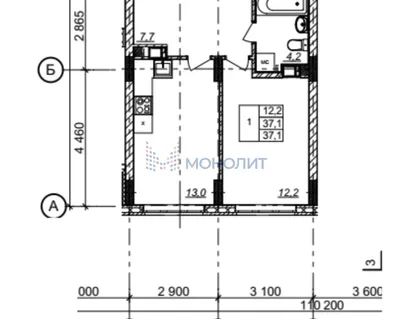 Тип: 1-комнатная квартира
