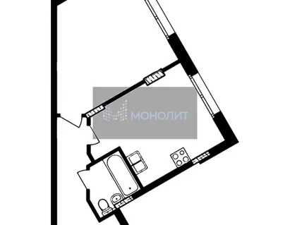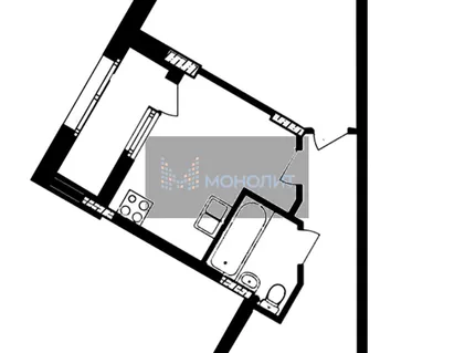 Квартира общей площадью 32.1 м2, кухня 5.8 м2, комната 18.6 м2, с выходом на застеклен...