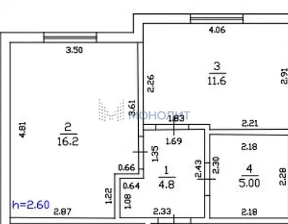 Кухня 12 м, комнат...