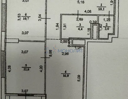 Общая площадь 44,5 кв м балкон
