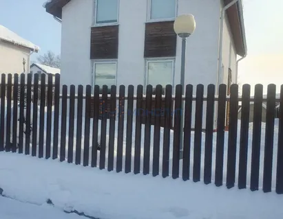 По всему периметру участка располагается забор, установлены ворота открывающиеся с пульта.