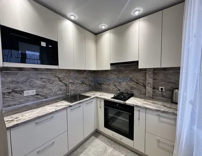 В квартире санузел в свежей современной плитке, на кухне остается гарнитур со встроенной техникой, в остальном ...