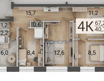 Площадь — 42,2 м²