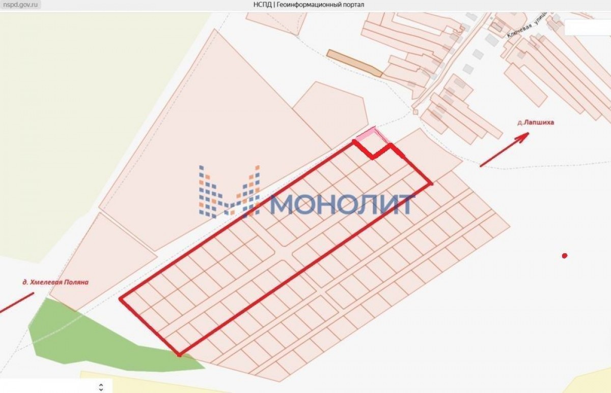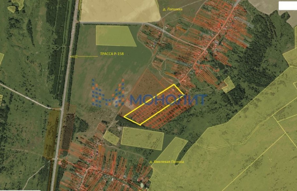 Продается земельный участок 5,9 Га в престижном и перспективном направлении по Арзамасской трассе, всего 37 км от города, южное направление. Земельный надел подходит под застройку Коттеджного посёлка (ИЖС), с выделенными дорогами шириной 10 метров. Относиться к муниципальному образованию деревне Лапшиха, категория земель: -земли населённых пунктов. Деревня газифицирована. Удобные подъездные пути для строительной техники и транспорта. В деревне постоянно работающий магазин. Скоростная, современная, четырёхполосная трасса М158 практически до поселка. Участки ровные на возвышенности с прекрасными видами на лесные хвойные массивы. Кластер застраивается современными коттеджными усадьбами - КП «Гремячая поляна», КП «Янтарное» КП «Хмелевая Поляна». Рядом прекрасные озера с пляжами «Борцовские пруды» и озеро в КП «Янтарное» с организованной рыбалкой!Документы подготовлены к продаже.Для застройщиков и оптовых покупателей могут быть предусмотрены специальные условия покупки земельных участков.``Номер объекта: #5/1788354/11523